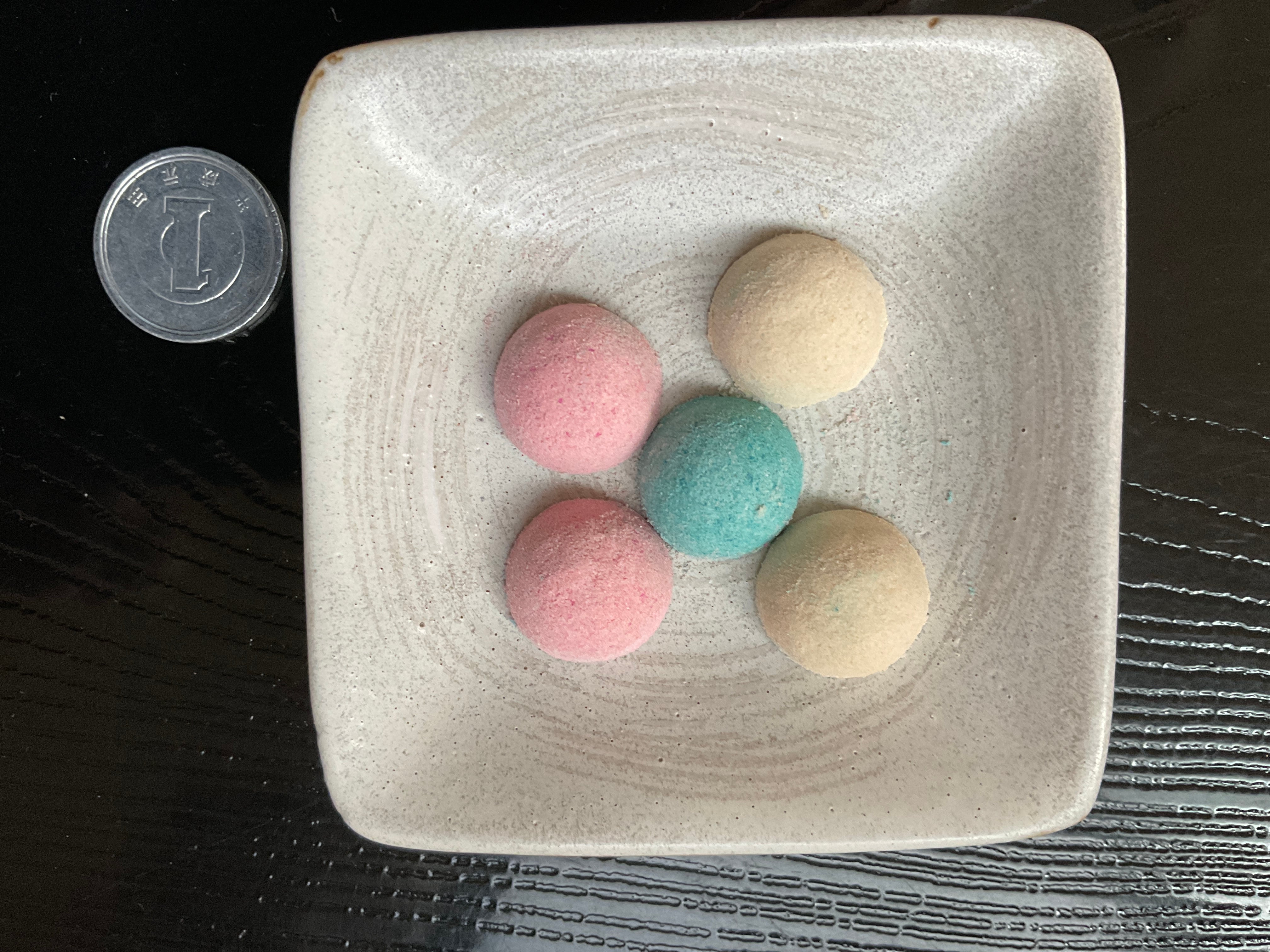和三盆糖(国内製造)、餅米、粳米、白餡、水飴/トレハロース、着色料(赤3、赤106、黄4、黄5、青一)(一部に小麦・乳成分・大豆を含む)
